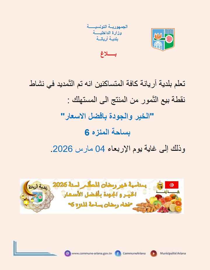 #دعوة# بمناسبة شهر أكتوبر الوردي تنظم بلدية اريانة والإدارة الجهوية للصحة يوما مفتوحا لتقصي مرض سرطان الثدي وذلك يوم الاربعاء 23 أكتوبر 2024 انطلاقا من الساعة التاسعة صباحا بمنتزه بئر بلحسن الدعوة مفتوحة للجميع والعيادات مجانية